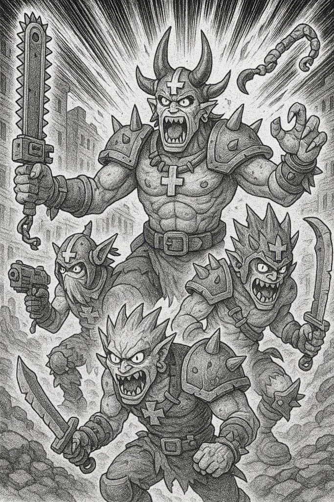 The Goremongers Kill Team comprises a selection of Chaos Space Marine operatives, each bringing unique capabilities to the battlefield: