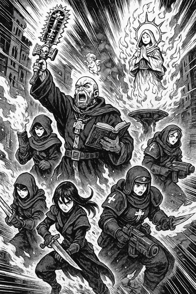 Confessor: The team’s leader, delivering sermons that provide buffs to nearby allies. His “Lead the Procession” ability allows for significant movement and positioning advantages. Miraculist: A floating operative who can set herself ablaze, damaging nearby enemies. Death Cult Assassin: A melee specialist with high damage output, ideal for eliminating key targets. Drill Abbot: Provides close-combat support and maintains team discipline. Missionaries: Equipped with flamers and plasma guns, they offer short-range firepower to control the battlefield. Salvationist: Acts as the team’s medic, ensuring operatives stay in the fight longer. Cherub: A support unit that can grant Miracle Dice or command point rerolls, enhancing the team’s efficiency.